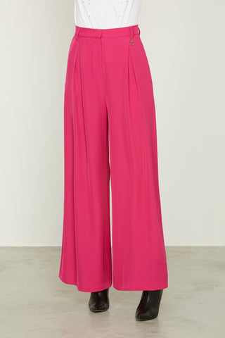 FOREVERA wide high waisted trousers with pleats and French pockets