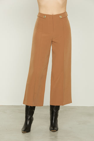 ELMY high-waisted palazzo crop trousers with stitching and martingale