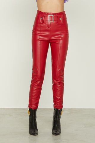 MOTOS high-waisted trousers with belt plus buckle plus studs plus faux leather cuts