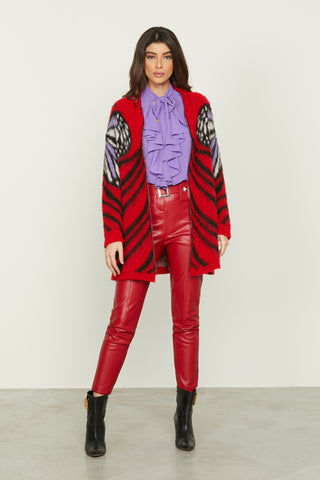 FURLOV high-waisted trousers with contrasting micro houndstooth strap