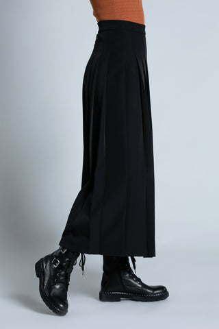 PRYTTU high-waisted palazzo trousers with pleats plus French ts plus check flaps