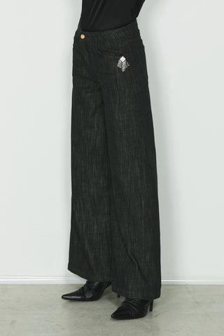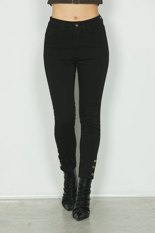 Panta LINDA_30 vita media 5 ts con bottone gioiello wild fit in black denim