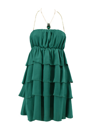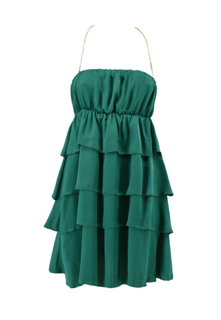 Short ALINA dress with back neckline with sequins and ruffles