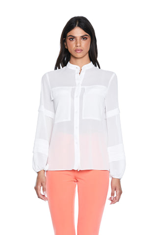 KISSME long sleeve shirt with pleats and Korean neckline with pockets