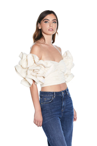 BONNI heart-colored crop-top with breast sash plus ruffles at the bottom with pleated effect