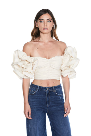 DAWERS Crop-Top 3/4 balloon sleeves with curls plus crochet embroidery plus back opening