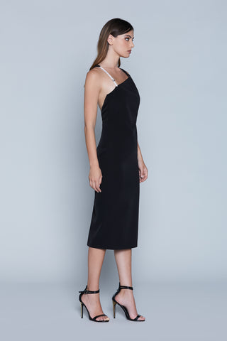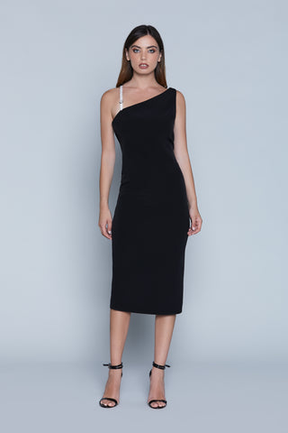 LOV midi S/M dress with jewel shoulder strap plus side opening and slit