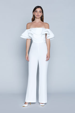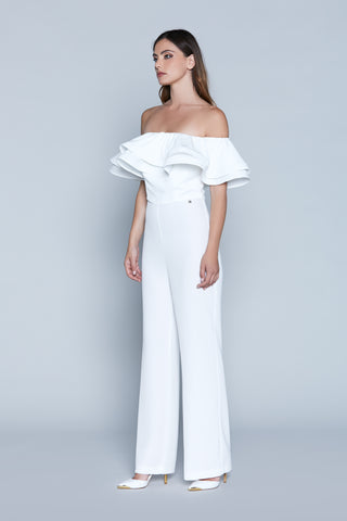 GORGEOUS long half-sleeved jumpsuit with boat neckline and ruffles