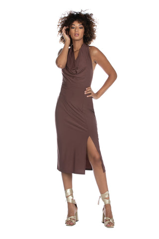 PEROTE sleeveless midi dress with sheath back neckline and slit