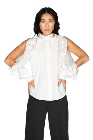 FARINELLA short, long-sleeved denim jacket with rips and bull drill