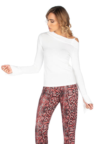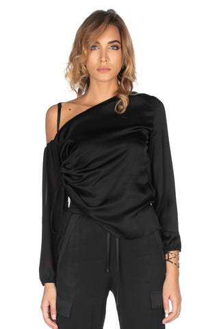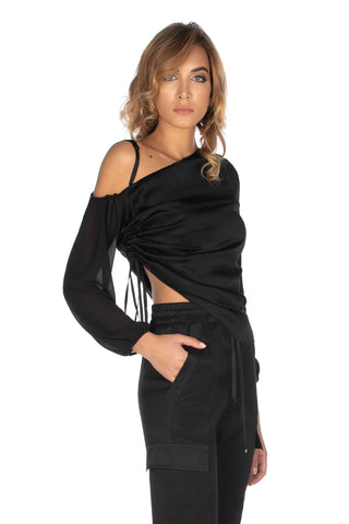 BUSHIRE one-shoulder long-sleeved georgette blouse with side drawstring