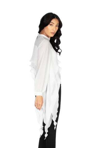 AURORITA sleeveless deep V-neck blouse with ruffles
