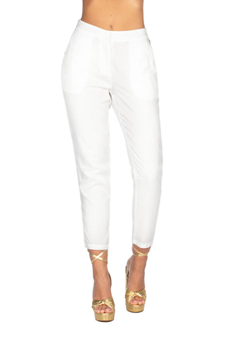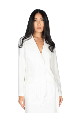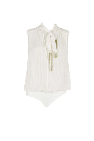 STRIMBLIK sleeveless bodysuit with deep V-neck plus sash with gold stripe fringes