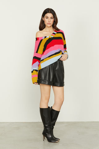 Shorts ELEKTRA vita alta con cintura più fibbia logo più piega fondo ecopelle