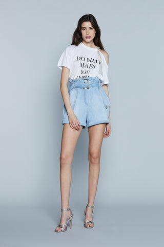 Shorts SACHI_F Vita Alta 5 Ts F.Do Sfrangiato più Cintura Catena più Foulard