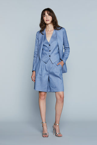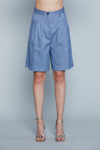 Bermuda MELITA_C Vita Alta con Pinces più Tasche Francesi più Filetto Gessato