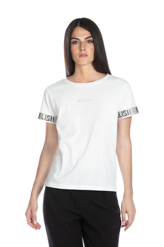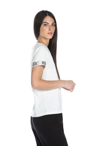 CANCERI half-sleeved t-shirt with rhinestone print and decollete with logo