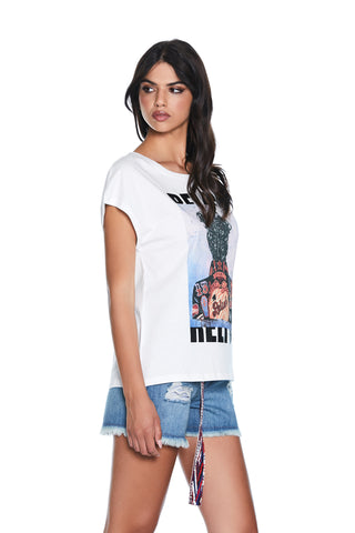 T-Shirt COSLADA M/M con Apertura Spalla più Stampa più Spilla con Pietre